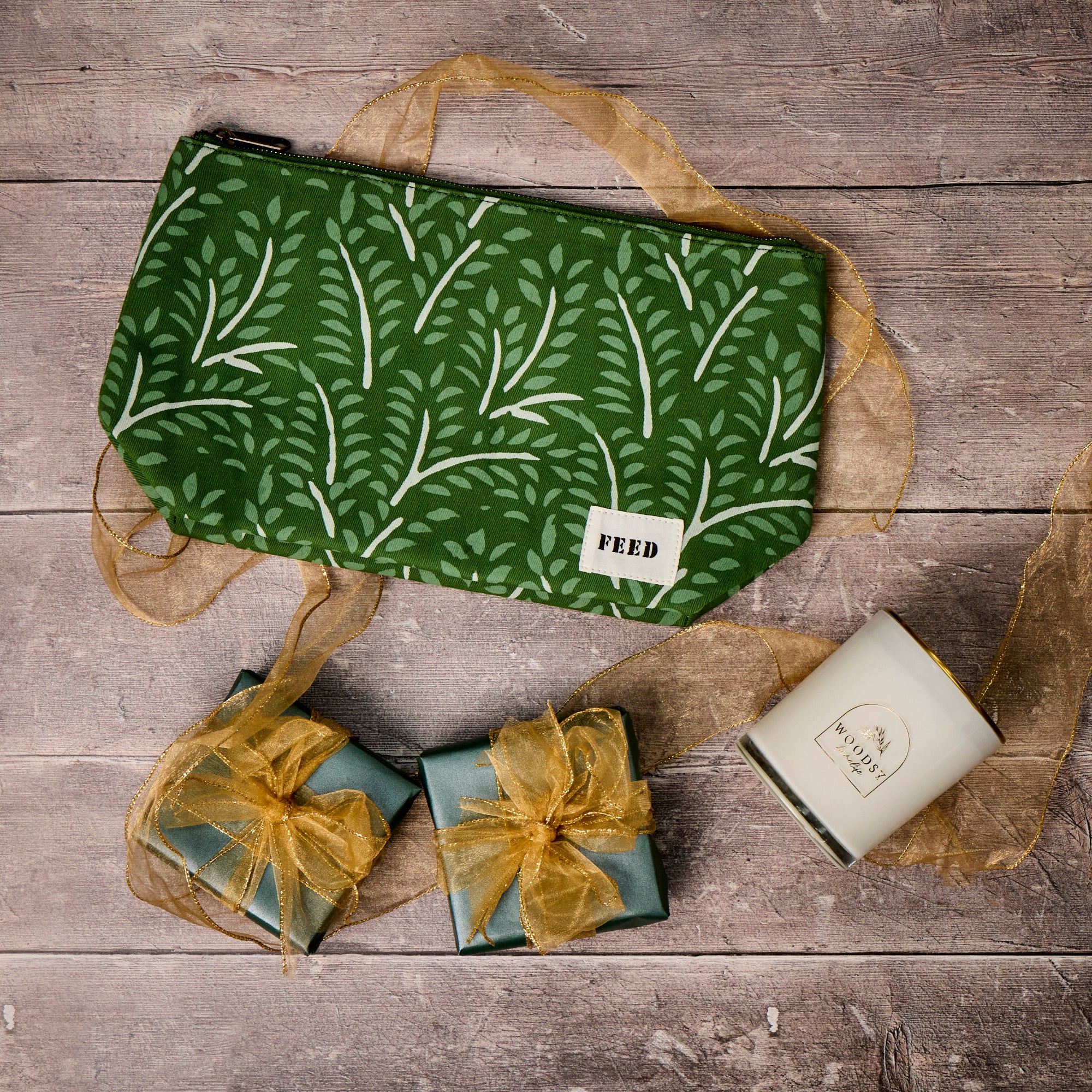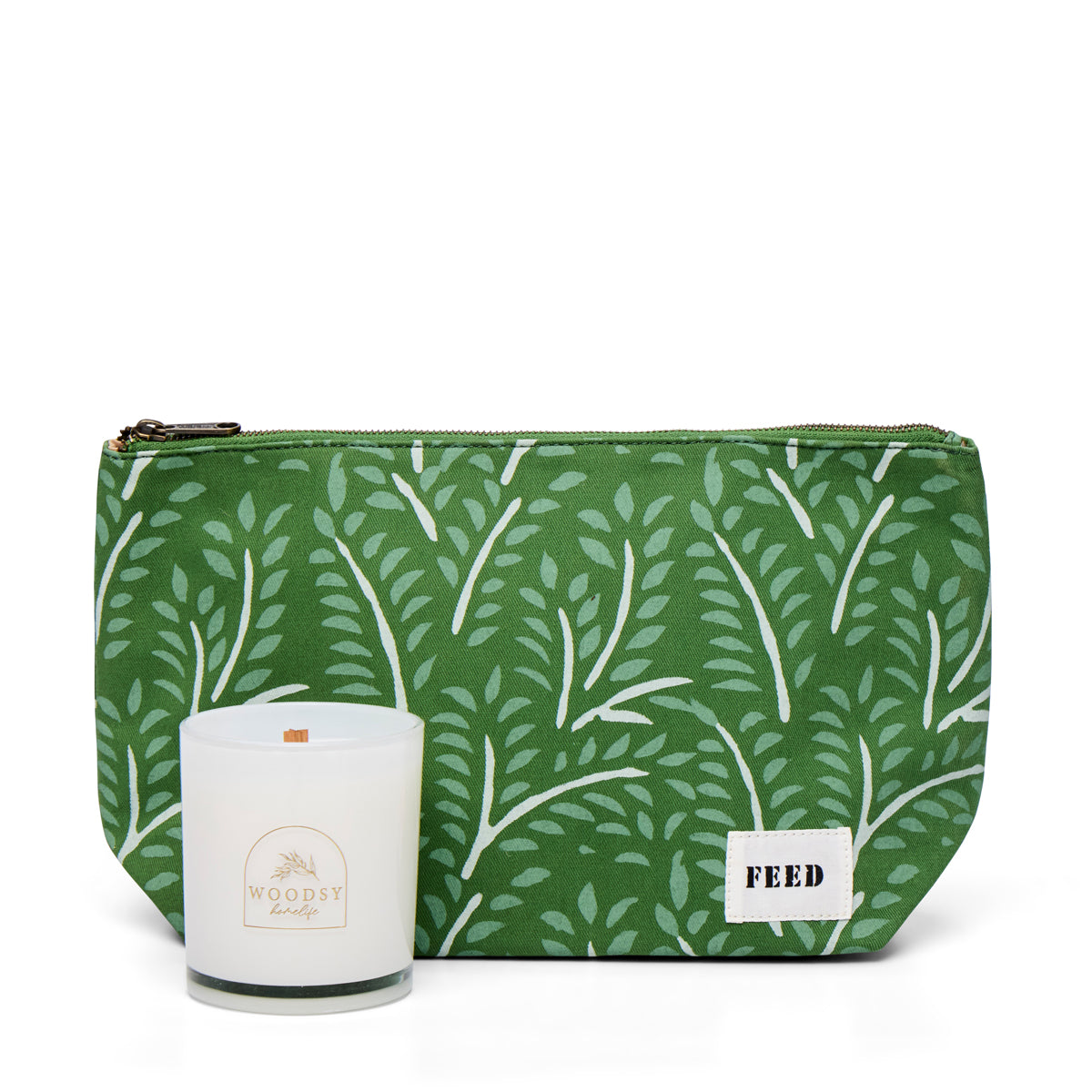Meet our Holiday Peace gift bundle, featuring your choice between our Leaf Block Print or Army Green Oversized Pouch paired with a Juniper & Balsam Spruce Candle. It's an effortless gift for anyone on your list, from neighbors to teachers to your BFF.